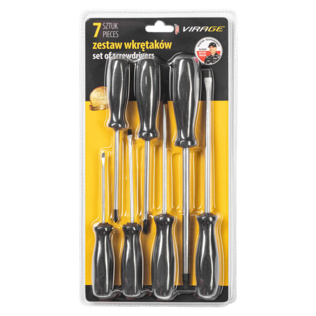 Praktyczny zestaw wkrętaków to niezastąpione narzędzie w każdym domu, warsztacie i biurze. W skład kompletu wchodzi 7 wkrętaków o różnych rozmiarach, dzięki czemu łatwo poradzisz sobie z różnymi śrubami i zadaniami montażowymi.